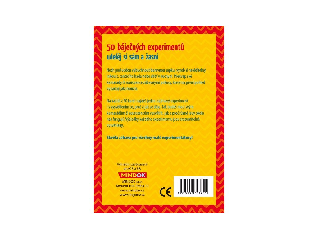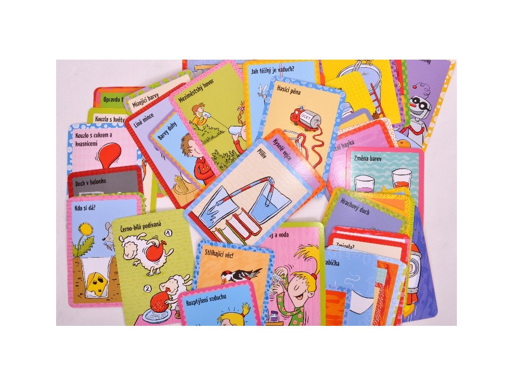 Na každé z 50 karet najdete jeden zajímavý experiment i s vysvětlením co, proč a jak se děje. Tak budete moci svým kamarádům či sourozencům vysvětlit, jak a proč různé jevy okolo nás fungují. Výsledky každého experimentu jsou srozumitelně vysvětleny.