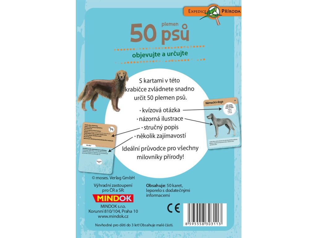 Díky kartám v této krabičce zvládnete hravě určit 50 plemen psů. Na kartách najdete kvízovou otázku, názornou ilustraci, základní informace a také několik zajímavostí.