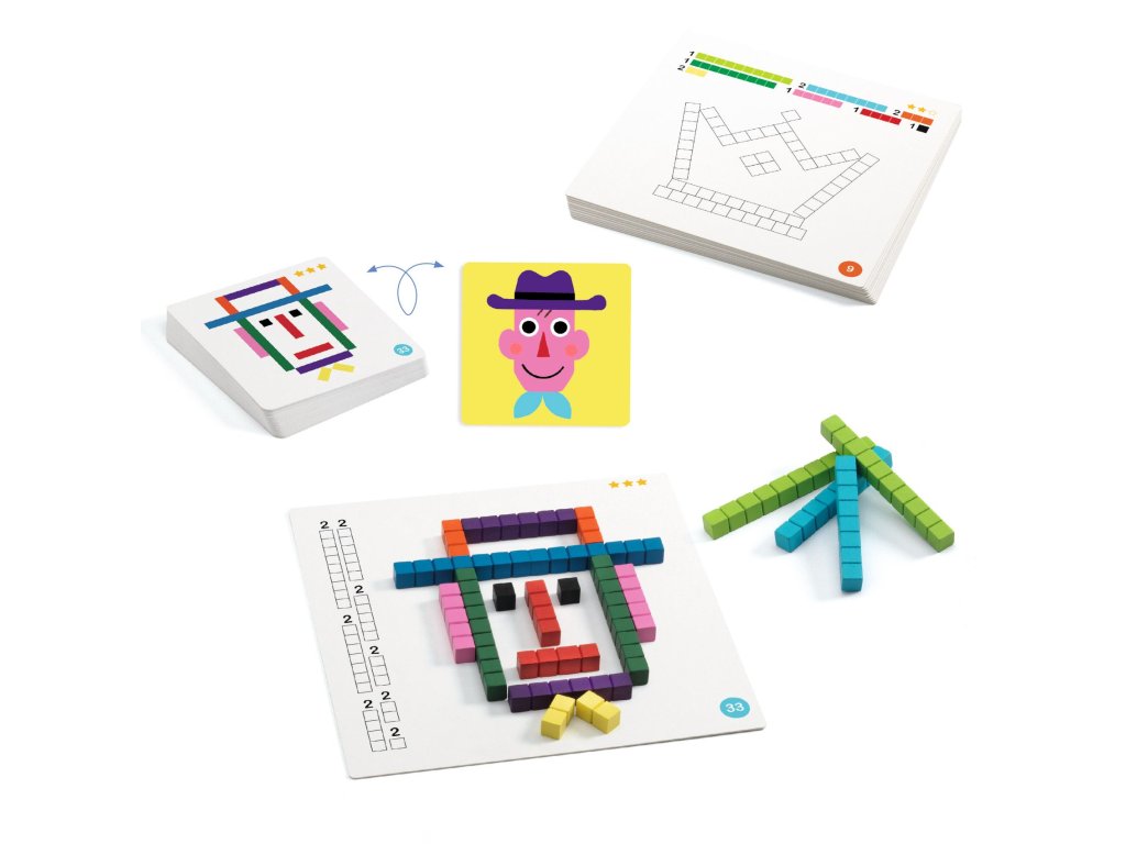 Chytrá hra, která dětem pomůže zorientovat se v délce a jednotkách. Obsahuje cvičení, která dětem pomůžou lépe pochopit matematické principy. Zadání postupují od snazších po složitější. Obsahuje 20 dřevěných barevných tyčinek a 18 oboustranných karet zadání. U zadání dítě vždy vidí, jaké tyčinky musí použít, aby vyplnilo obrázek. Doporučeno od 4 let.