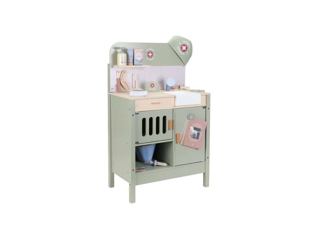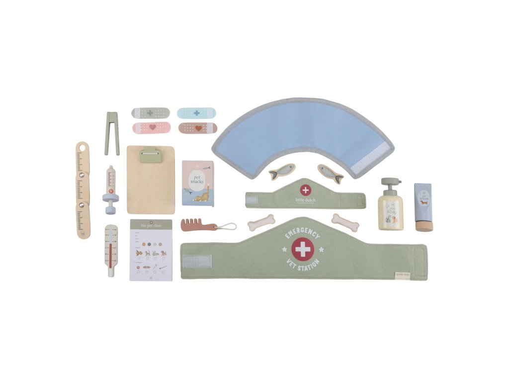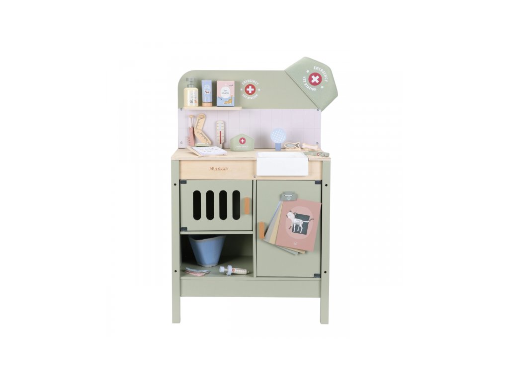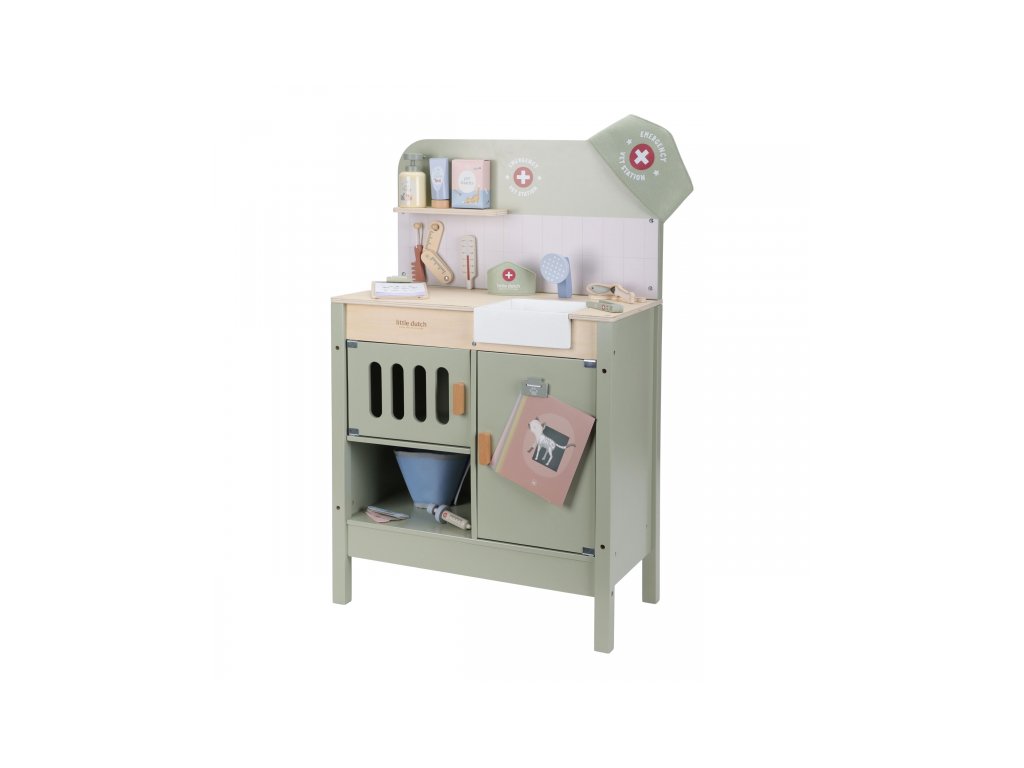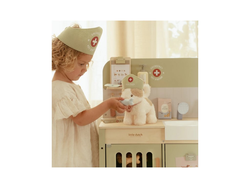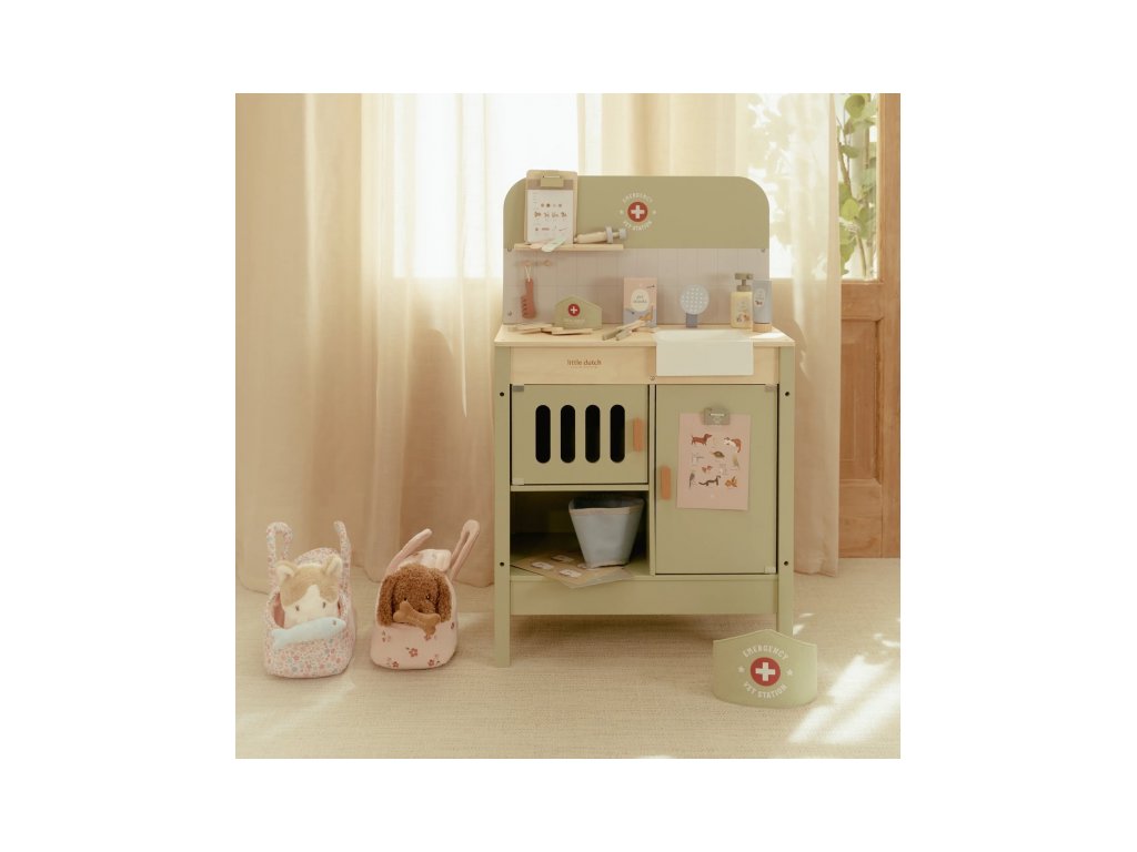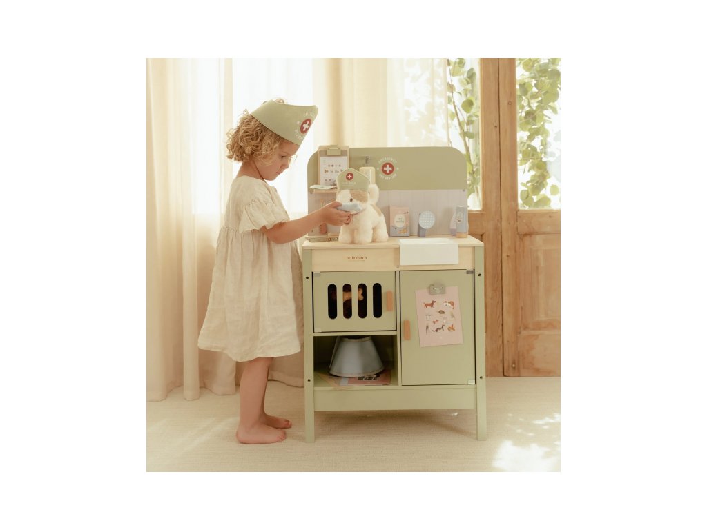 Dřevěná veterinární ordinace Little Dutch je skvělým dárkem pro děti, které milují zvířátka a péči o ně. Díky realistickým doplňkům se malí ošetřovatelé snadno ponoří do světa péče o nemocné mazlíčky. Připravte se na spoustu příběhů ze života plyšových zvířátek a nekonečné hodiny zábavného hraní!