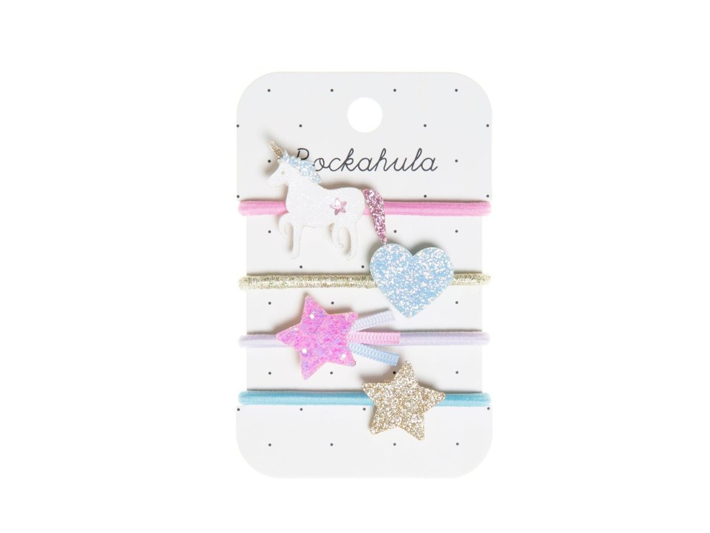 Krásné gumičky od značky Rockahula. Sada obsahuje hned 4 gumičky. Nevhodné pro děti do 3 let!