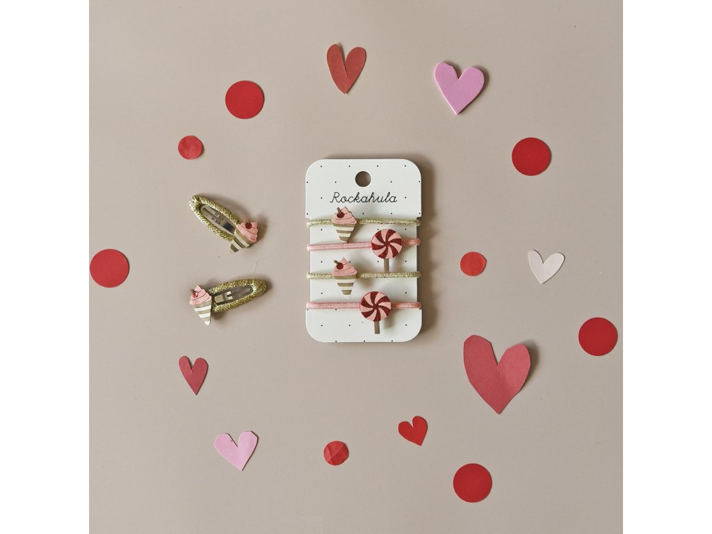 Nabídněte si osvěžující zmrzlinu! Anebo se ozdobte těmito krásnými gumičkami od značky Rockahula. Vyrobeny s využitím recyklovaných třpytek, plsti a plastu. Nevhodné pro děti do 3 let.