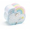 Půvabná hrací skříňka ve tvaru obláčku s motivem jednorožce. Skříňka slouží současně jako šperkovnice nebo skrýš na poklady. Po otevření víčka se z krabičky line příjemná melodie a jednorožec se začne točit. Skříňka je o velikosti 17,4 x 14,5 x 8,2cm. Pro děti od 4 let. Natahuje se na kličku.