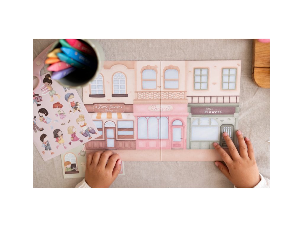 Fantazie vašeho dítěte ožije s touto veselou samolepkovou knížkou Little Dutch. Obsahuje více než 90 barevných samolepek s tématem nakupování a oboustranné herní pozadí, na kterém si děti mohou vytvářet vlastní příběhy, scény a dobrodružství.