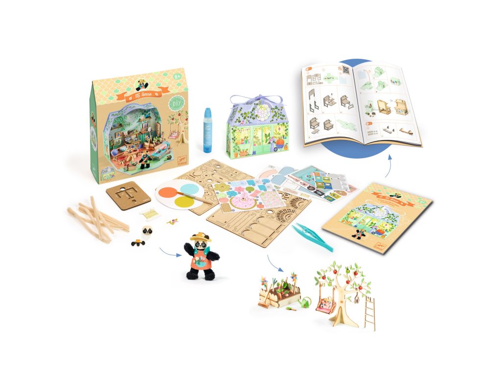 Tvořivá sada, která děti seznámí s modelářstvím krok za krokem – od malování, přes skládání až po lepení. Výsledkem je jedinečný domeček s malým obyvatelem a nábytkem, který se dá zavřít a uvnitř uchovat všechny doplňky. Hotový domeček se tak stává nejen krásnou dekorací, ale i malou truhlicí pokladů.