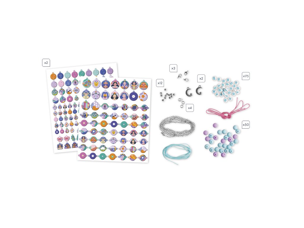 S touto řemeslnou soupravou mohou děti ve věku od 7 let vyrobit 14 šperků s motivem astrologických znamení a buď si je nechat pro sebe, nebo je nabídnout svým přátelům. Zahrnuto je každé znamení zvěrokruhu.