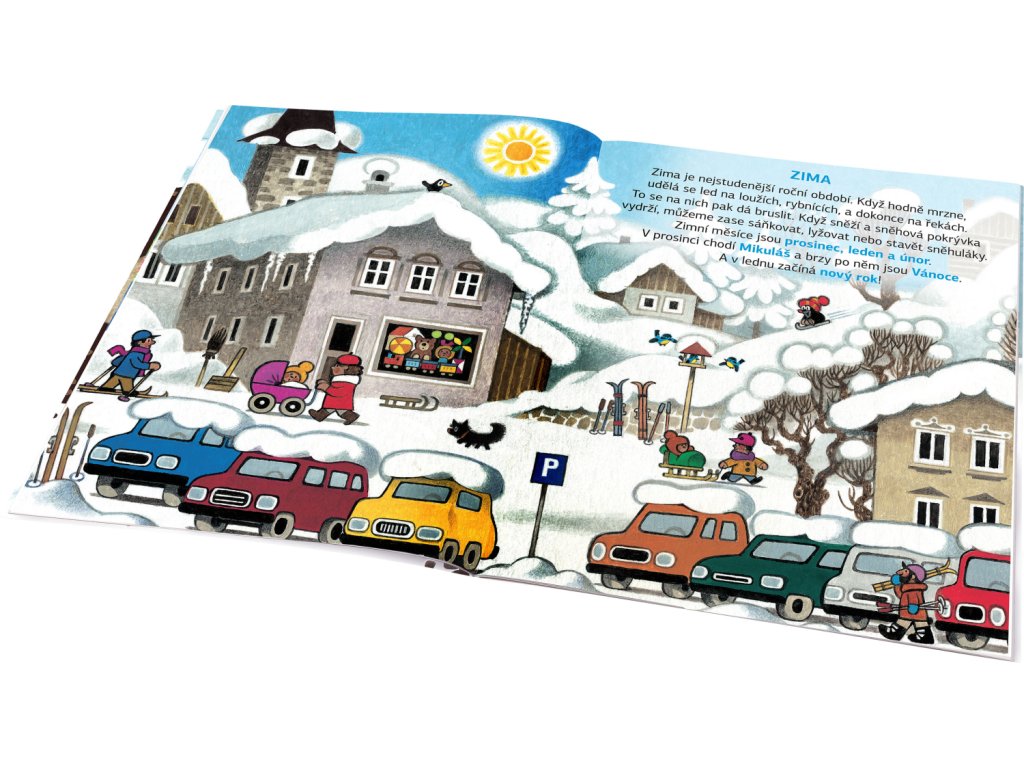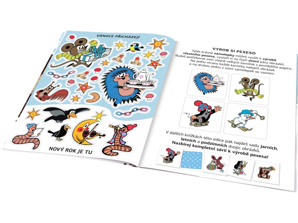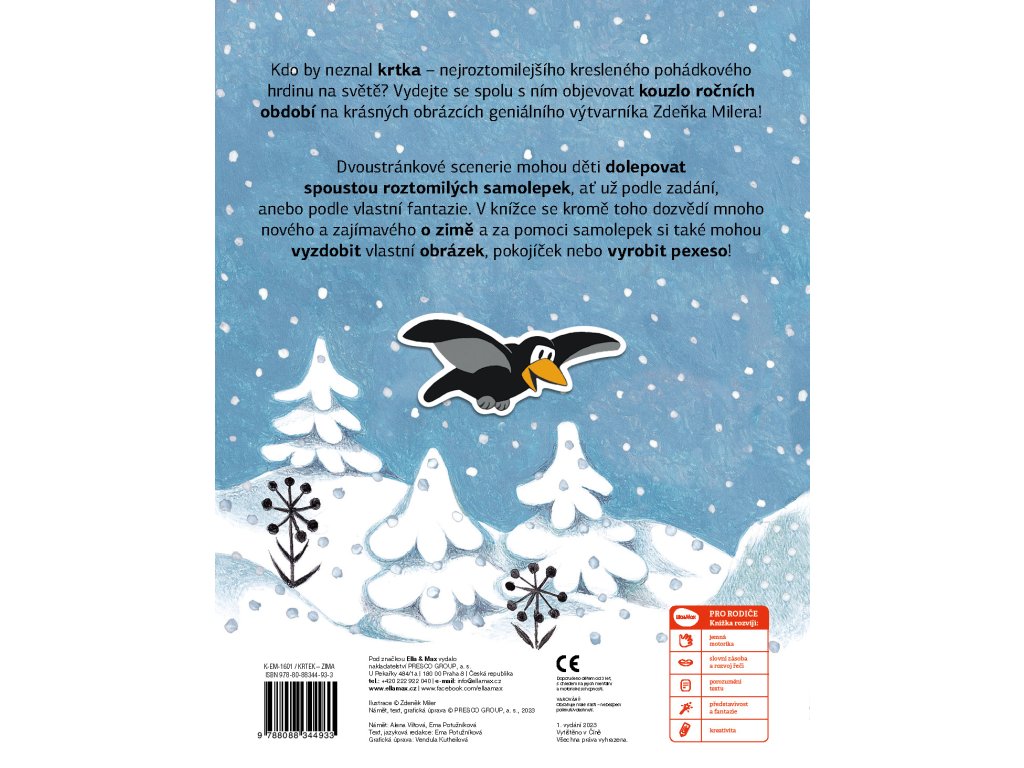 Kdo by neznal krtka – nejroztomilejšího kresleného pohádkového hrdinu na světě? Vydejte se spolu s ním objevovat kouzlo ročních období na krásných obrázcích geniálního výtvarníka Zdeňka Milera! Dvoustránkové scenerie mohou děti dolepovat spoustou roztomilých samolepek, ať už podle zadání, anebo podle vlastní fantazie. V knížce se kromě toho dozvědí mnoho nového a zajímavého o zimě a za pomoci samolepek si také mohou vyzdobit vlastní obrázek, pokojíček nebo vyrobit pexeso!