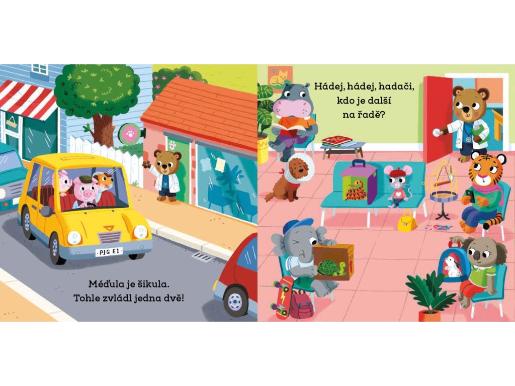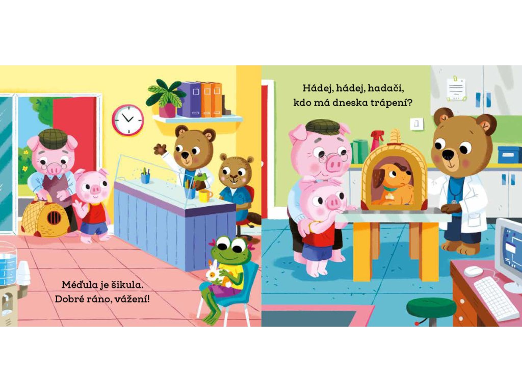 Rýmované leporelo s posuvnými prvky a pohyblivými obrázky malým čtenářům jednoduše učaruje! Knížkou je provede roztomilý Méďula, který umí snad úplně všechno. V tomto titulu s ním zavítají do veterinární ordinace! Doporučeno od 2 let.