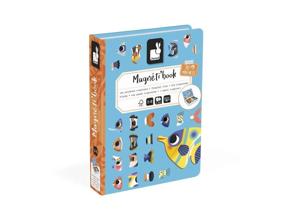 Růžová, modrá, zelená... Jsou tam snad ve všech možných barvách! Ponořte se do hry a objevte oslnivé tropické ryby! Tato magnetická hra se skládá ze 30 magnetů a 10 karet. Cílem hry je reprodukovat ryby na magnetické tabuli podle šablon na kartách. Tímto způsobem může vaše dítě vytvořit krásné, barevné ryby!