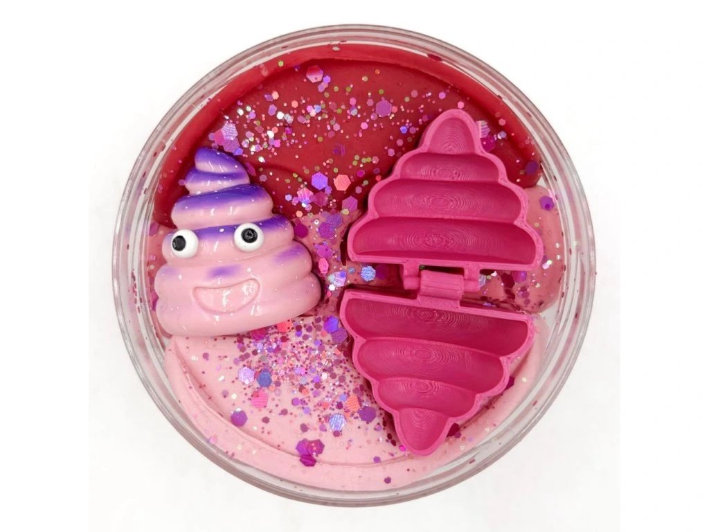 Balení obsahuje: 250 g voňavé a měkkoučké domácí modelíny ve třech odstínech růžové, třpytky, konfety, figurka hovínka, eco PLA hovínkovač