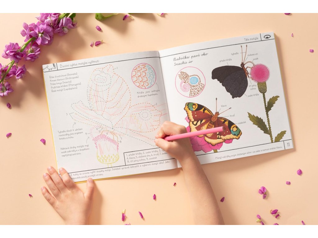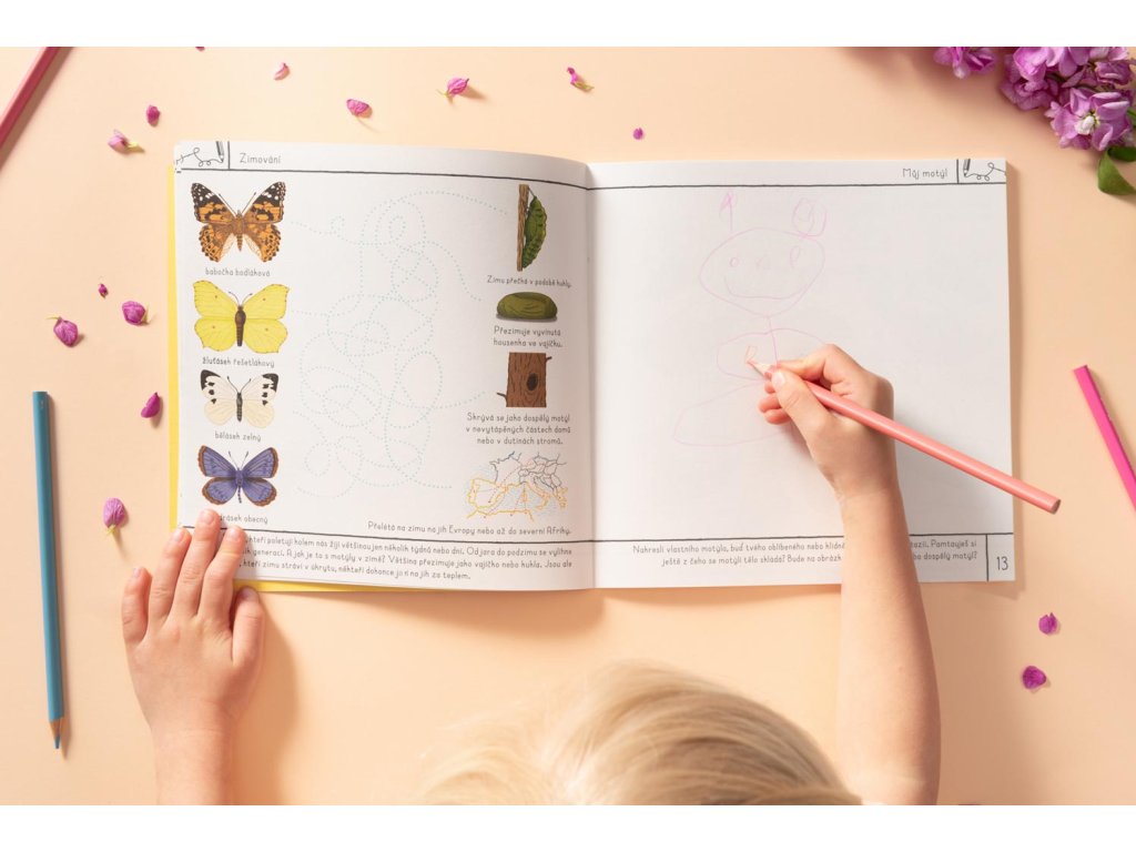 Nový přírůstek do edice Učíme se hrou. Sešit plný aktivit z motýlího života. Děti si mohou ze sešitu vyrobit pomocí nůžek a lepidla i šest poznávacích karet. Na jejich zadní straně najdou zábavné komiksy. Vhodné od 5 let.