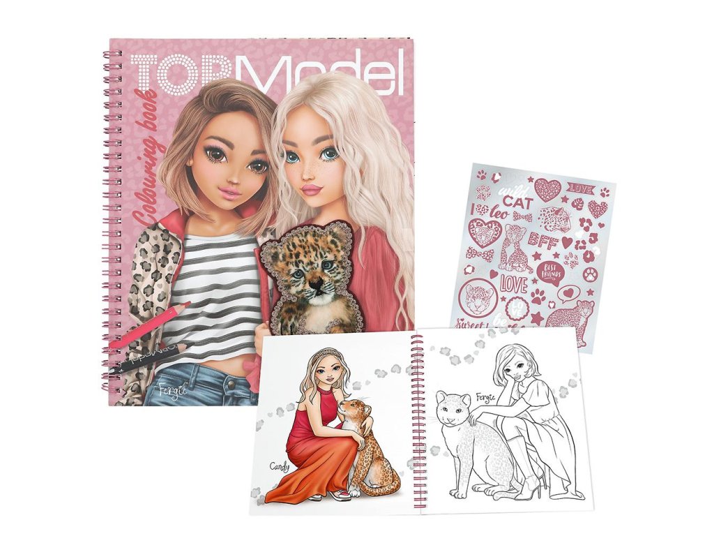 Fergie & Candy, 40 obrázků – stylové omalovánky TOPModel s roztomilými kočkovitými šelmami a modelkami, doplněné archem samolepek.