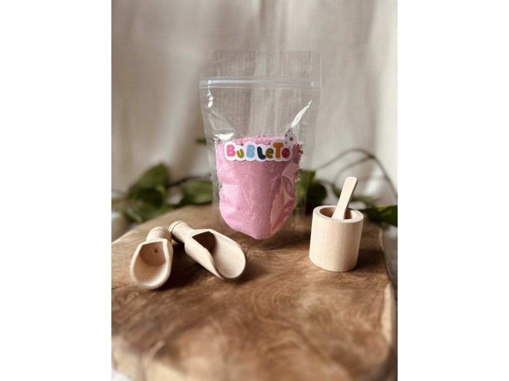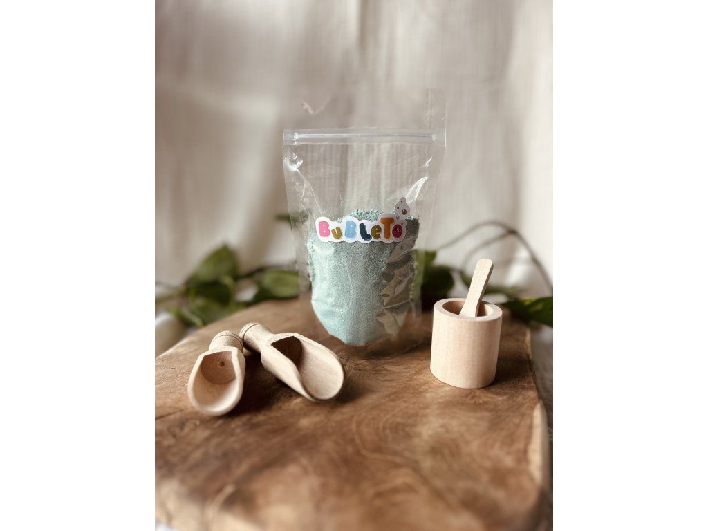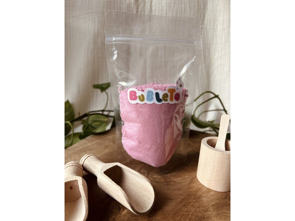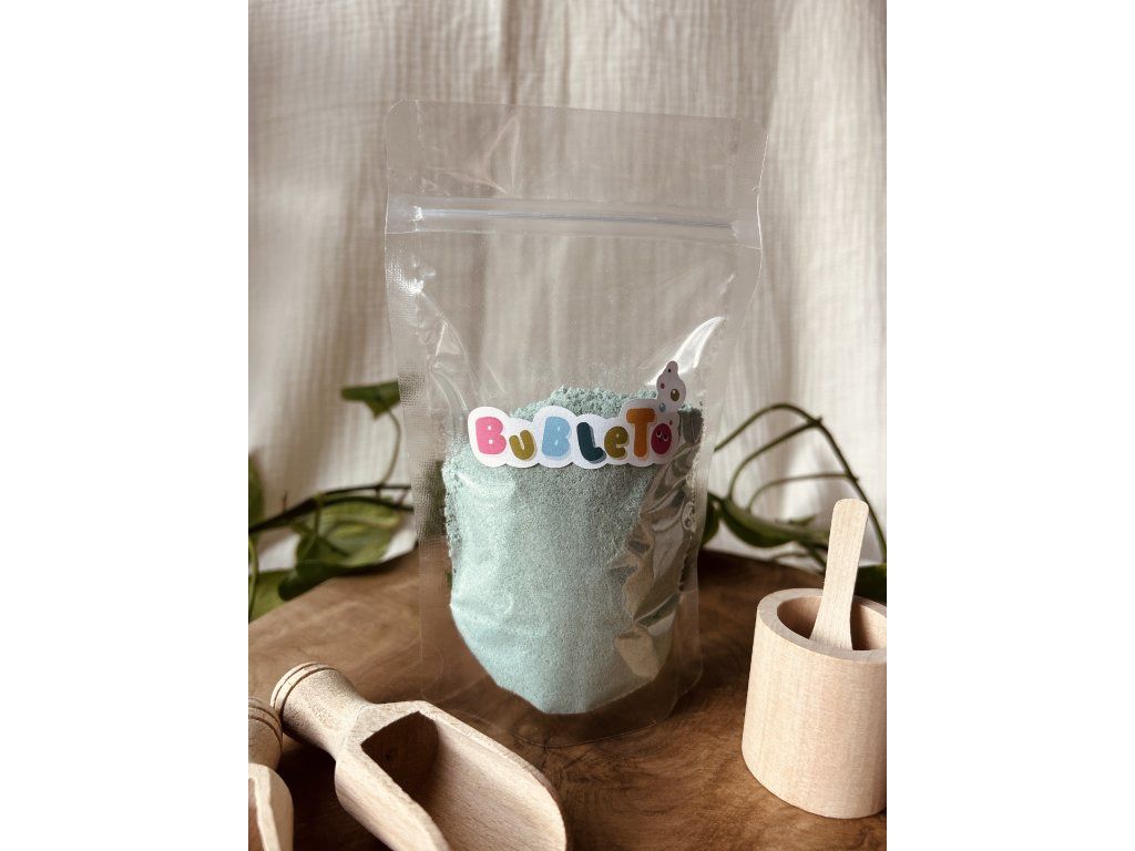 BubleTo je prášek, který se po kontaktu s vodou mění ve voňavou pěnu. Tu mohou děti dále zkoumat, hrát si s ní, anebo ji kombinovat s dalšími produkty od této slovenské značky. Jedno balení obsahuje 150 g prášku. Doporučujeme nakoupit různé barvy a různé produkty a dětem je vždy pro danou hru odsypat. K základní hře vám postačí mistička, lžička a podložka, například tác nebo plech. Předem odměřené suroviny zabrání kontaminaci, míchání, plýtvání a současně děti dokážou samy odhadnout, kdy bude konec.