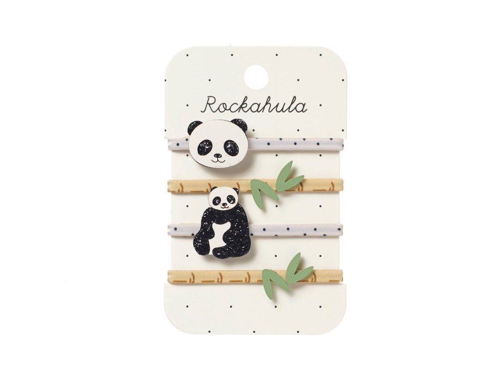 Polly je perfektní panda a dodá roztomilý šarm každému účesu! Tato sada čtyř gumiček má roztomilou pandu vyrobenou z třpytek a dva poníci mají Pollyin oblíbený bambus! Jsou ideální na party nebo safari! Vyrobeno z recyklovaného filcu, třpytek a PU.