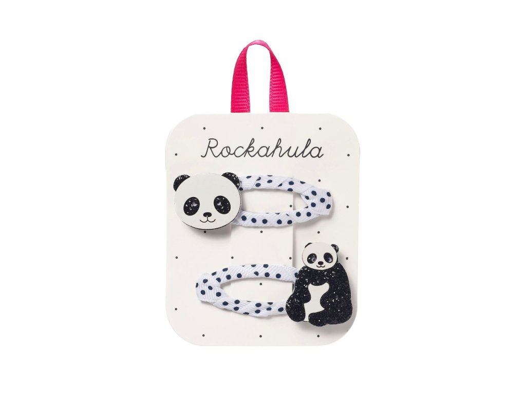 Polly je perfektní panda a dodá roztomilé kouzlo každému účesu! Tato sada dvou sponek obsahuje dvě roztomilé pandy sedící na sponách z flekatého grogrénového materiálu omotaných stuhou - jsou ideální na party nebo safari! Vyrobeno z recyklovaného filcu, třpytek a PU.