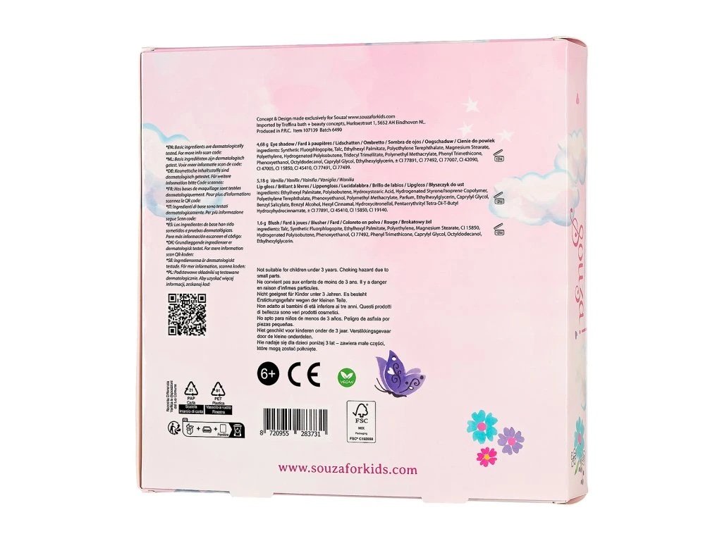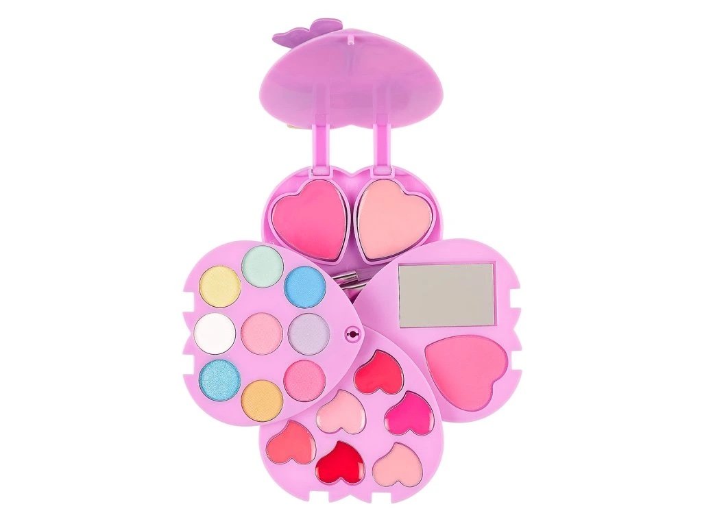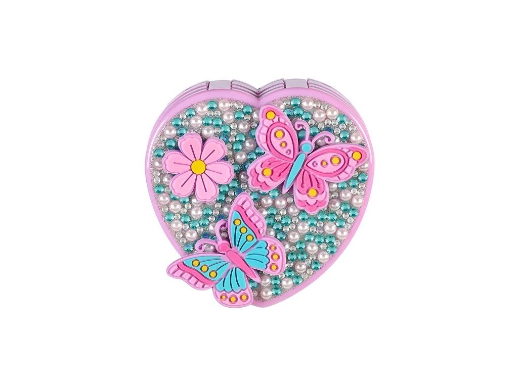 Okouzlující kosmetická sada ve tvaru srdce potěší všechny od 6 let. Po rozložení odhalí zrcátko a pestrý výběr dětské kosmetiky vhodné pro bezpečné a hravé líčení. Pouzdro ve tvaru srdce se rozkládá do stran a je dekorováno perlami, motýlky a květinou. Celá sada je balena v kartonové krabičce s průhledným okénkem, ideální jako dárek.