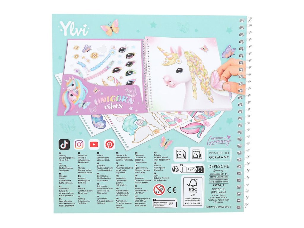 Kouzlo jednorožce na každé stránce! Kreativní sešit se samolepkami Ylvi přináší 24 stran s obrysy hlav jednorožců, které si můžete dotvořit podle vlastní fantazie. Součástí je 11 archů nádherně barevných samolepek – oči, hřívy, doplňky, ozdoby, kouzelné detaily… vše, co potřebujete pro vytvoření svého jedinečného jednorožce.