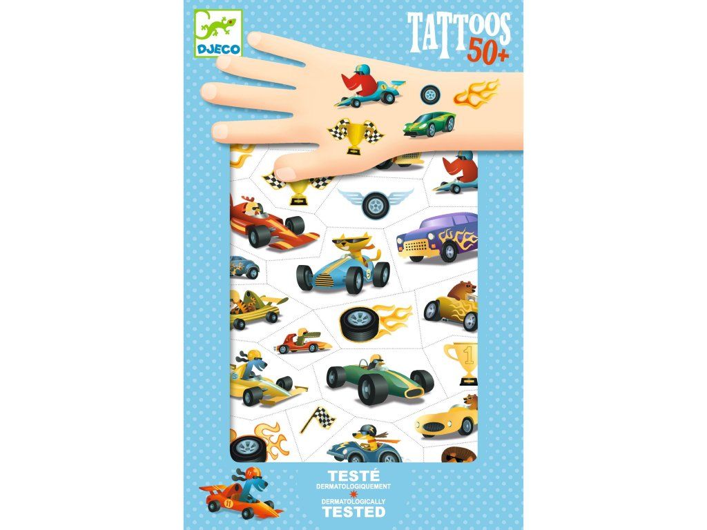 Závodní tetování plné rychlosti a lesku. Bezpečné a kvalitní tetování od značky Djeco.