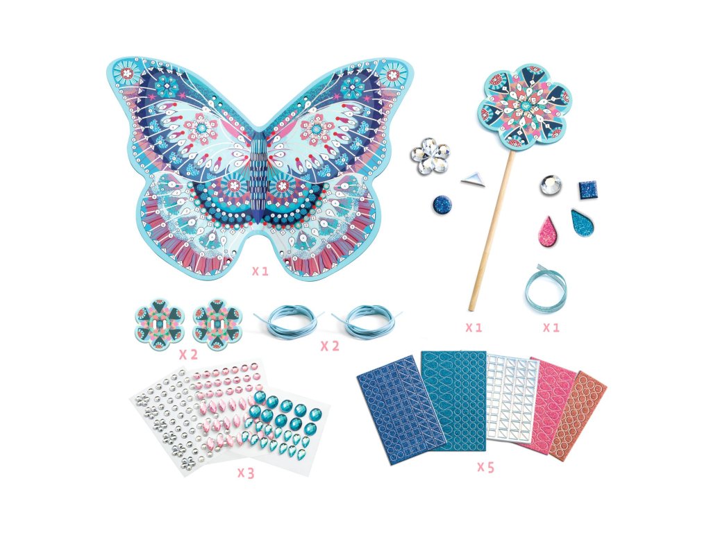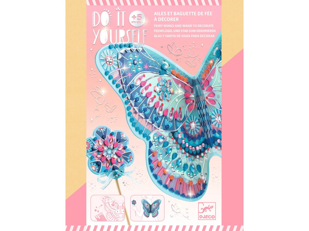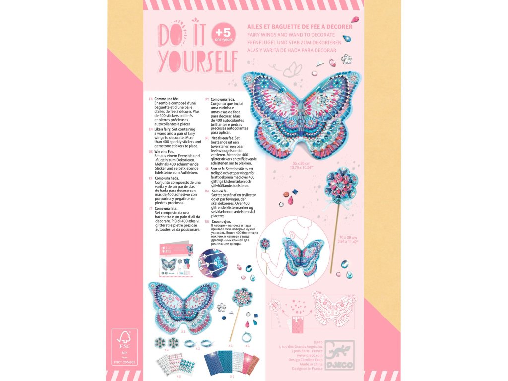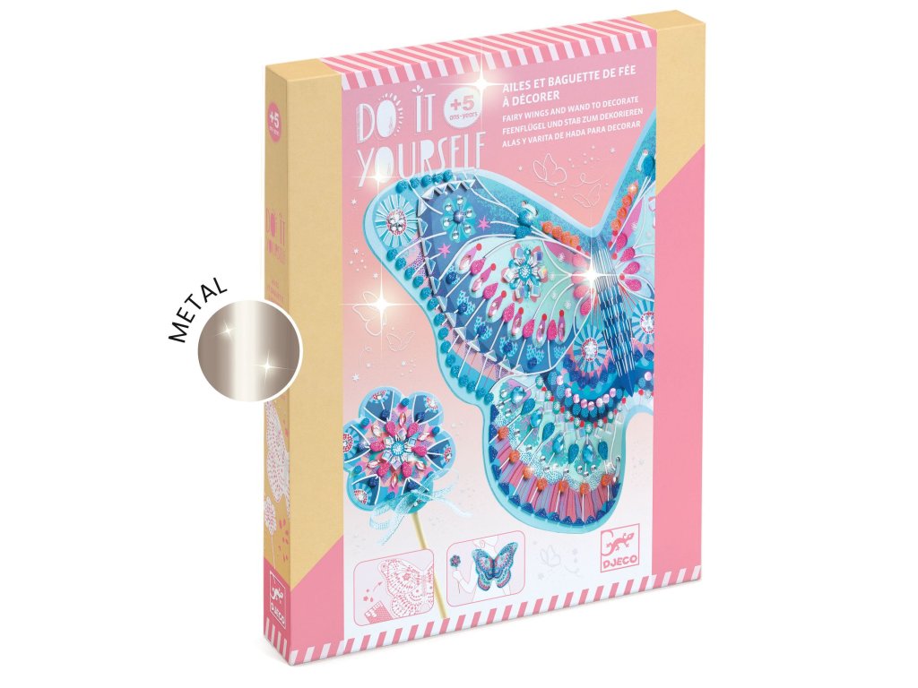 Krásná třpytivá kreativní sada od značky Djeco, ve které najdete vše k vytvoření kouzelné hůlky a páru křídel. Každá z částí má na sobě čísla, podle kterých dítě dolepuje části pěnové mozaiky nebo třpytivé kamínky. Skvělé i jako kostým na party nebo karneval. Nechybí obrázkový návod krok po kroku.