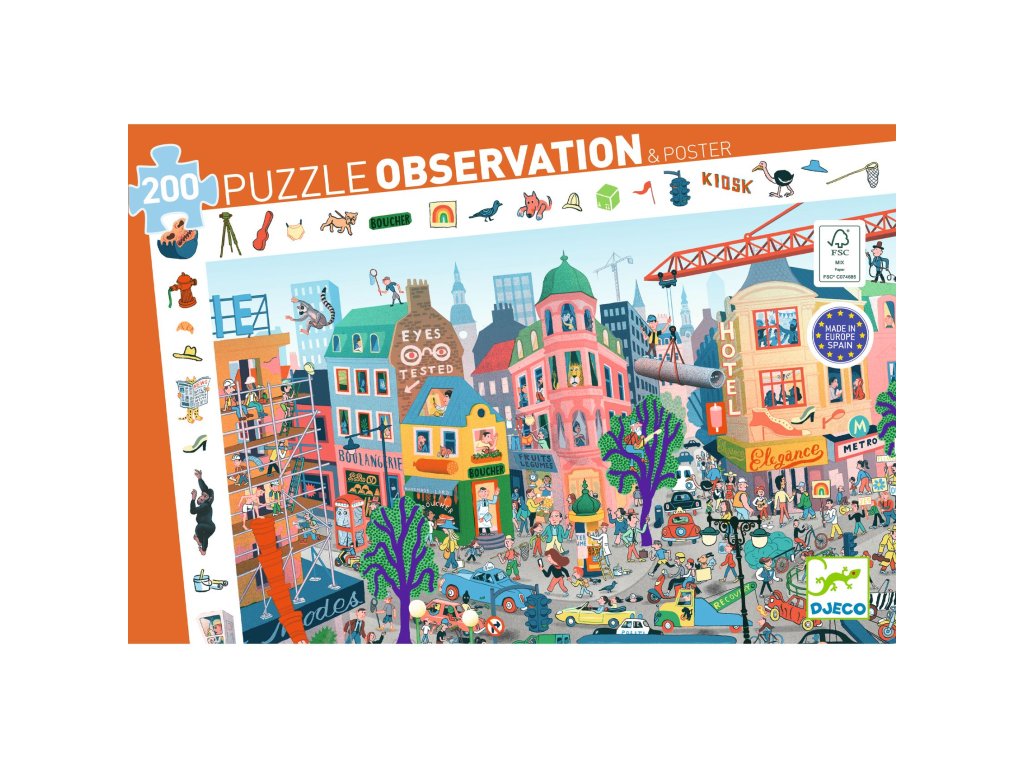 Pozorovací puzzle o 200 dílcích, ve kterém děti hledají zvířátka ze zoo, která se ukryla ve městě. Děti se po dokončení puzzle baví hledáním prvků zobrazených uvnitř obrázku, které jsou vyobrazené po okraji.