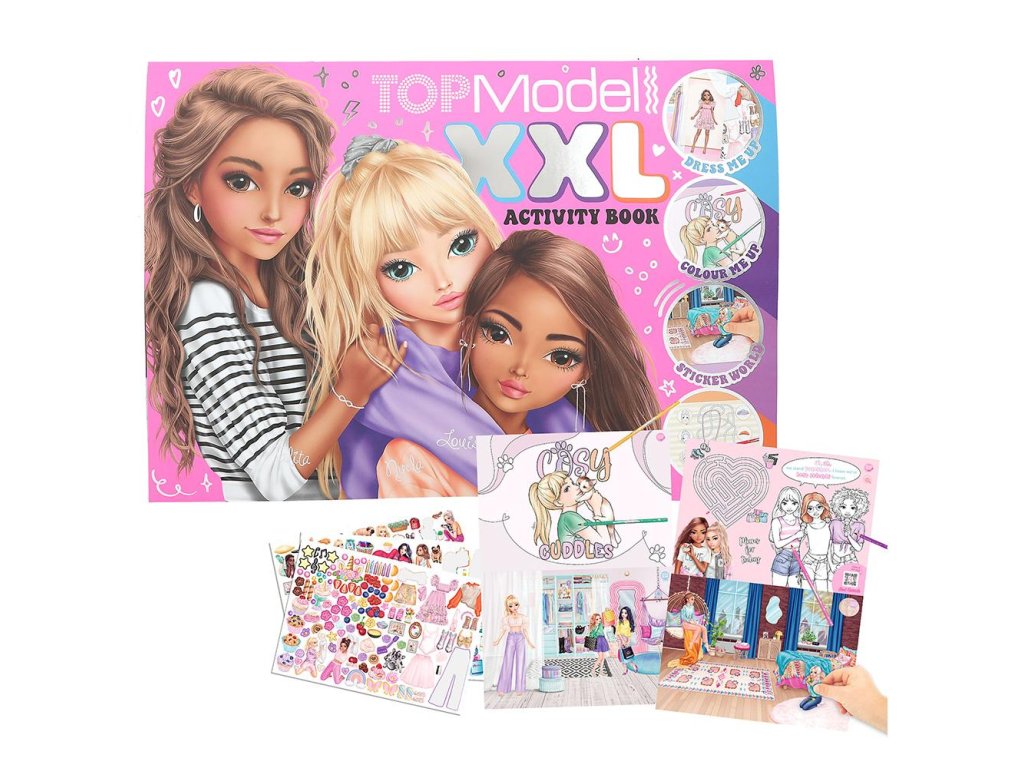 Kreativní sešit TOPModel XXL Activity Book přináší 24 stran plných zábavy – omalovánky, hádanky, kreativní úkoly a spoustu prostoru pro vlastní tvoření.