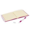 Zápisník má rozměry 160 x 160 mm, 176 linkovaných stran, slonovinový papír.