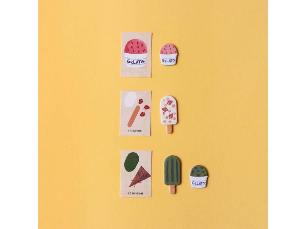 Gelato je rychlá postřehová hra, ve které je potřeba jako první najít tu správnou zmrzlinu nebo nanuk, který odpovídá předloze. Jednoduché, svižné a ideální na cesty! Stačí otevřít krabičku, zamíchat zmrzliny a zábava může začít.