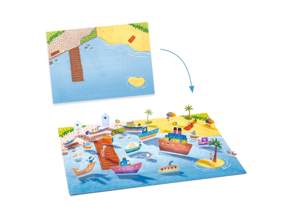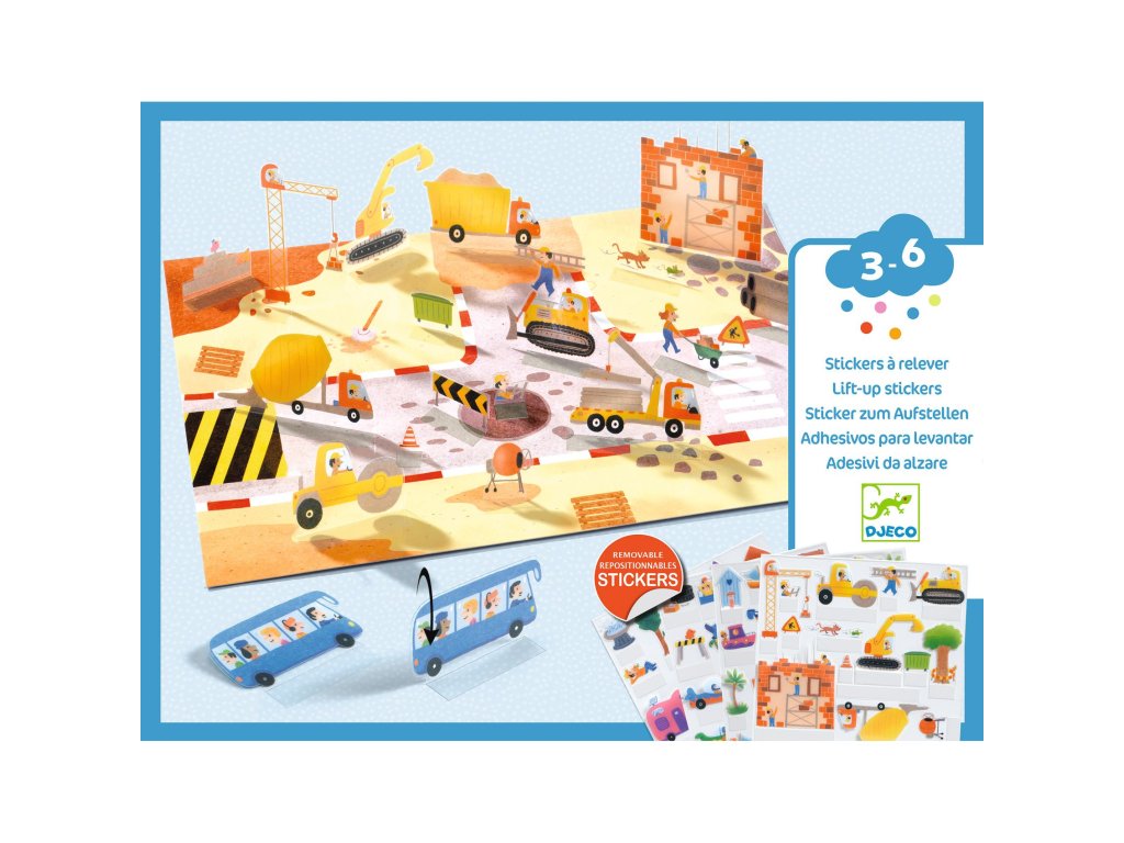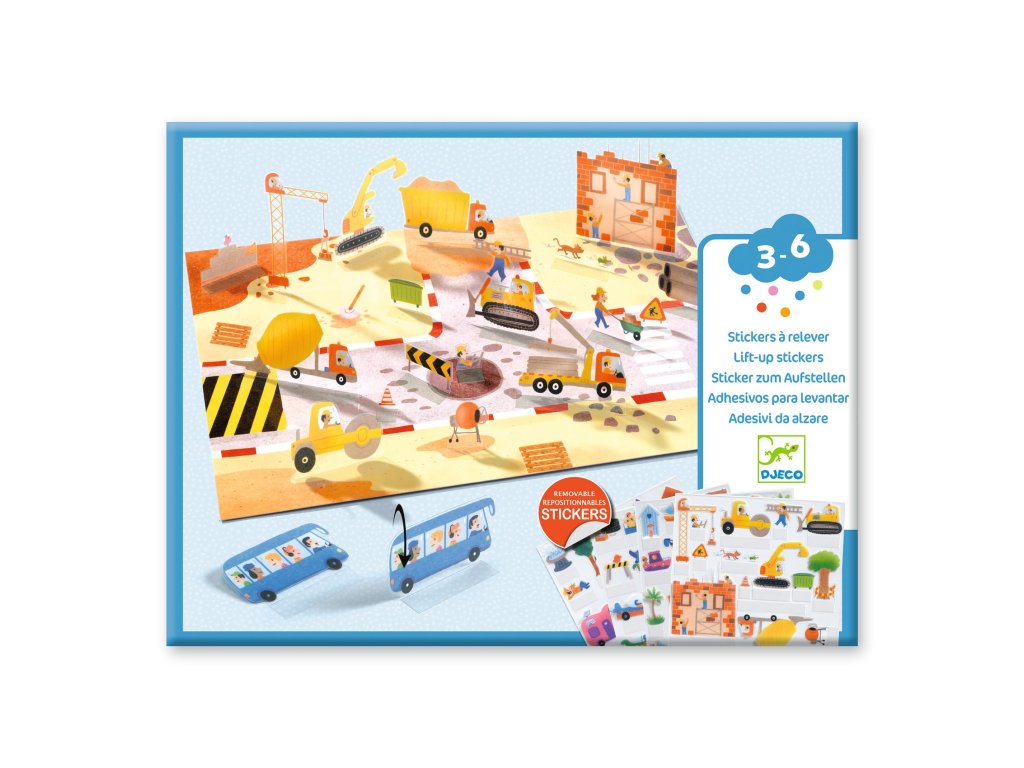 Zvedací samolepky jsou novinkou od značky Djeco. Jejich princip děti hned samy pochopí. Stačí samolepky rozložit na některou ze čtyř ploch, které najdete v balení, a samolepky přilepit a zvednout, čímž vznikne 3D efekt a jednotlivé scény téměř ožijí.